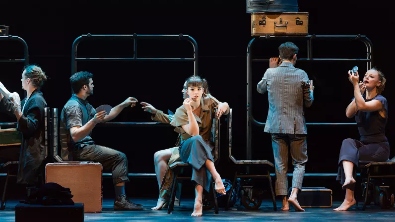 Le temps d'un voyage, des étrangers se côtoient dans un wagon de train. Au sein de cette fenêtre temporelle, ils existent dans une réalité suspendue. Reflets de leurs origines et embryons de leurs futurs, ils oscillent entre regrets et utopie. Inspirés par le mouvement et la transition du parcours, ils racontent leurs histoires faites de fuites et de rencontres. Alors que la cadence du voyage insuffle son rythme au paysage sonore, dévoilant le contenu de leurs bagages, ils se révèlent au public. Témoins du monde qui défile sous leurs yeux et qui les transforme à leur insu, ils métamorphosent leur compartiment en aire de jeux propice aux confidences.