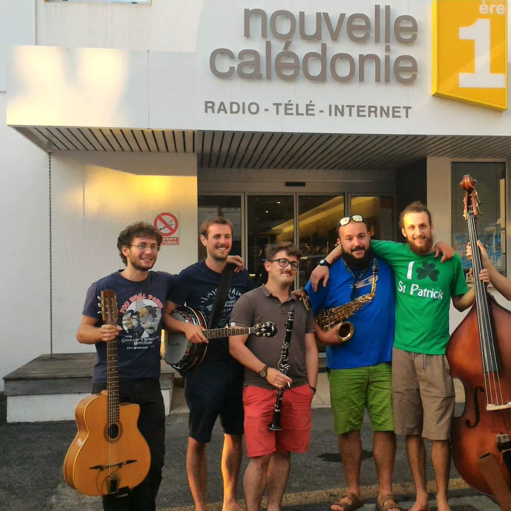 Nous finirons par un groupe de multi-instrumentistes venu de Toulouse qui swingue joyeusement : les Moustache Gracias. Entretien avec Léon, le contrebassiste du groupe. Ce dernier a eu un coup de coeur pour la Nouvelle-Calédonie et a formé le duo "Café Crème".