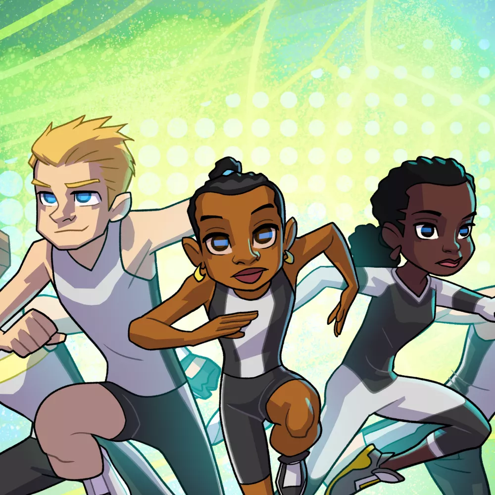 Les deux filles sont inspirées de Merlene Ottey et Marie-José Pérec. Les trois garçons sont inspirés de Christophe Lemaitre, Pietro Mennea et Jocelyn Delecour.