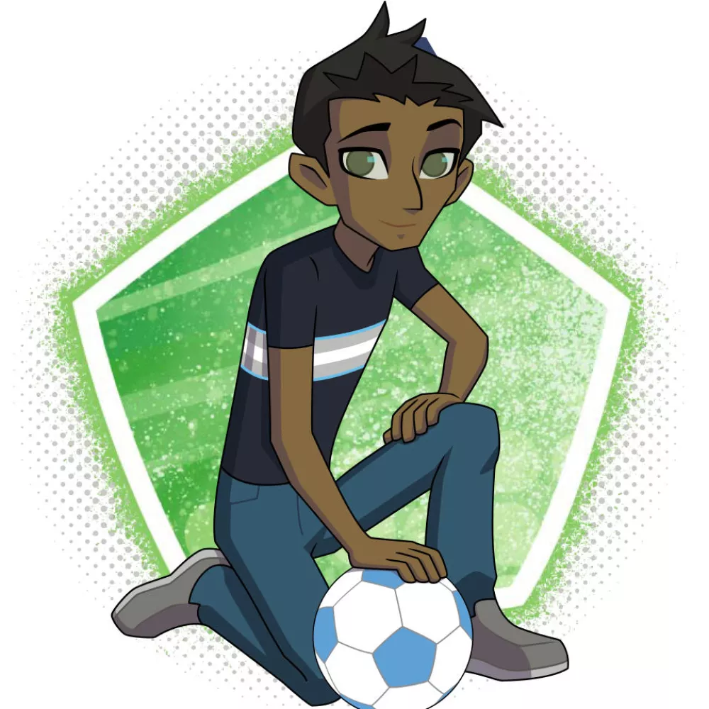 Sa famille et lui traversent la méditerranée sur un bateau de fortune pour fuir leur pays en guerre au Moyen Orient. Ils sont sauvés du naufrage en pleine mer par le patrouilleur d’une association. En Italie, ils prennent le train pour la France. Le train en arrêt à la gare frontière, contrôle douanier… ses parents et son petit frère Elias sont descendus du train. Assâad qui se baladait de wagon en wagon passe entre les mailles du filet. Il poursuit le voyage seul. Il est ensuite recueilli à l’Institut Riffler. Par rapport à cette guerre qu’il a vécue et à tout son parcours, Assâad a appris à relativiser. Ils perdent un match ? OK, c’est pas la fin du monde, y a pire dans la vie. Assâad s’est tout de suite bien entendu avec Petit Dragon. Ils partagent la même chambre à l’Institut. Ballon au pied, Assâad est bluffant. Sa force c’est la pointe de vitesse. Il est aussi bon élève, doué et sérieux. La première chose qu’il a d’ailleurs montrée à Mlle Adélaïde à son arrivée à l’Institut, ce sont ses bulletins scolaires qu’il avait précieusement emportés en quittant son pays. Il aide volontiers les copains pour les devoirs. Bon, disons qu’il troque quand même ses services. C’est un vrai débrouillard ! Assâad est obsédé par le fait de retrouver sa famille qu’il cherche avec ses petits moyens mais beaucoup d’ingéniosité : post de vidéo sur les réseaux sociaux avec l’espoir que ses parents le voient, recherche auprès d’associations… Il s’en confie un peu à ses copains les plus proches, mais il ne raconte jamais les circonstances dans lesquelles il a été séparé de ses parents…