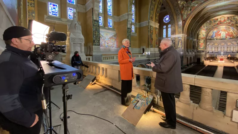 Retour à la crypte de la Basilique de Lisieux où Gwenaëlle rejoindra Emmanuel Houis, secrétaire général du sanctuaire de Lisieux. Ce dernier reviendra sur l’histoire de Thérèse et sur la construction de la Basilique.
