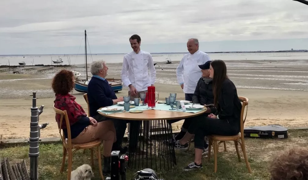 Le bassin d'Arcachon pour décor, une table plantée dans le sable, désormais, chaque semaine, Joël Dupuch, ostréiculteur et figure de la presqu'île du Cap-Ferret, accueille un.e artiste et des invités néo-aquitains pour mettre en avant de belles initiatives, le tout, accompagné d'un déjeuner concocté par un chef de la région, différent à chaque émission.