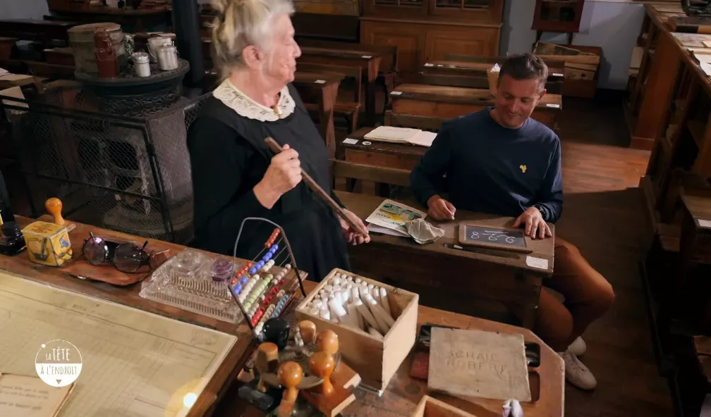 Françoise Nicod une ancienne institutrice lui donnera une petite leçon de mathématiques dans le joli musé consacré à l’école d’autrefois qu’elle a créé avec son mari.