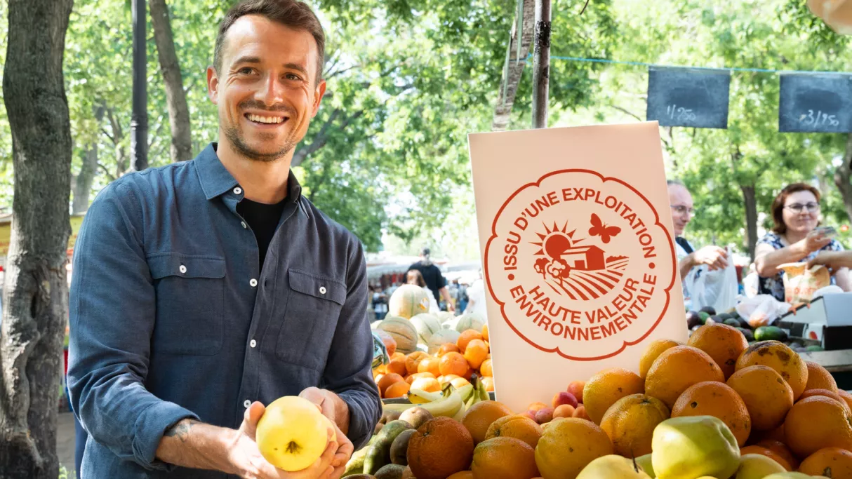 J’ai décidé de m’intéresser à ce joli label un jour où, en reportage, j’ai vu ce joli logo au wagon-bar du train. J’avais le choix entre un menu « bio ou HVE ». Je me suis demandé si les deux labels étaient vraiment comparables. C’est vrai que les mots « haute valeur environnementale » sont très attrayants. Ce label est encadré par les ministères de l’Agriculture et de l’Écologie, il a l’air génial et ambitieux.