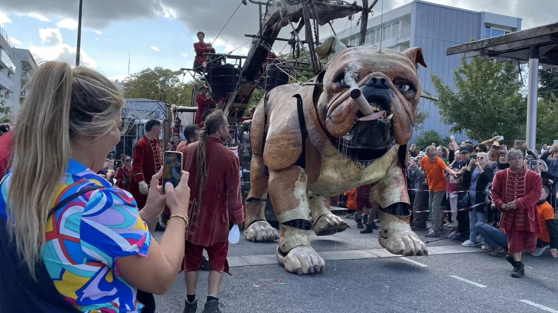 L'aventure se poursuit dans le quartier de Bellevue où Julie assiste à la parade de Bullmachin et Xolo, deux chiens mécaniques de la prestigieuse compagnie nantaise Royal de Luxe.