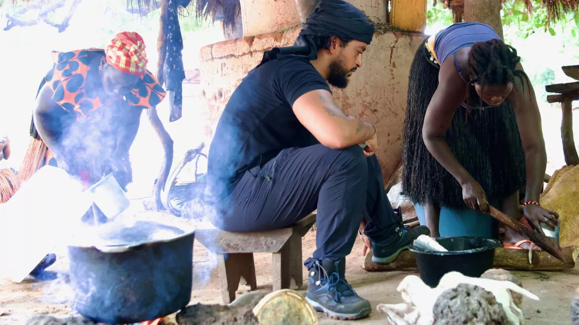Cette récolte du riz, l’usage des plantes ou le ramassage des coquillages – première source de protéines des Bijagos – permettent à Slimane et Raphaël de comprendre comment le quotidien se conjugue avec une compréhension fine des ressources naturelles et leur préservation.