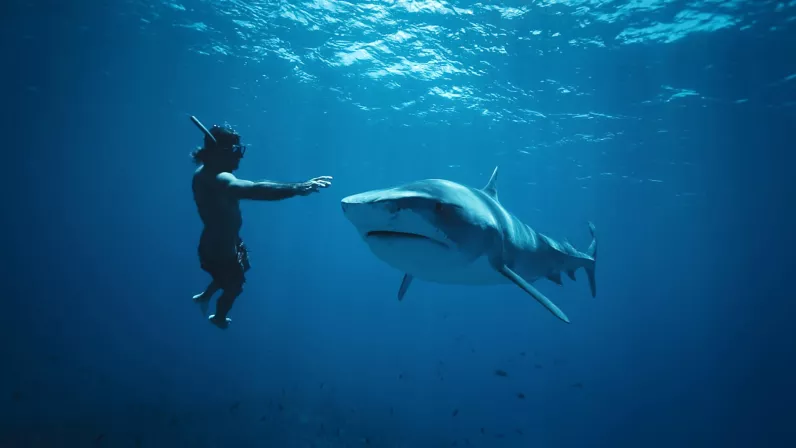 La quête de Diego va d’abord passer par la Polynésie, où toutes les espèces de requin sont aujourd’hui protégées sur l’ensemble du territoire, ce qui en fait le plus grand sanctuaire au monde. Parmi la vingtaine recensée, il en est une qui fascine autant qu’elle effraie, c’est le requin-tigre. Pour s’en approcher, Diego a souhaité se faire accompagner de Denis Grosmaire, un célèbre apnéiste qui vit en Polynésie depuis toujours et a dédié sa vie à la protection des requins, une espèce exterminée sur la plupart des mers du monde, notamment pour la consommation de ses ailerons. Diego, pourtant plongeur expérimenté, fait face à des conditions extrêmes de plongée avant de pouvoir espérer rencontrer le tigre d’Apataki.