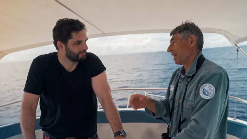 La quête de Diego va d’abord passer par la Polynésie, où toutes les espèces de requins sont aujourd’hui protégées sur l’ensemble du territoire, ce qui en fait le plus grand sanctuaire au monde. Parmi la vingtaine d’espèces recensées, il en est une qui fascine autant qu’elle effraie, c’est le requin-tigre. Pour s’en approcher, Diego a souhaité se faire accompagner de Denis Grosmaire, un célèbre apnéiste qui vit en Polynésie depuis toujours et a dédié sa vie à la protection des requins.