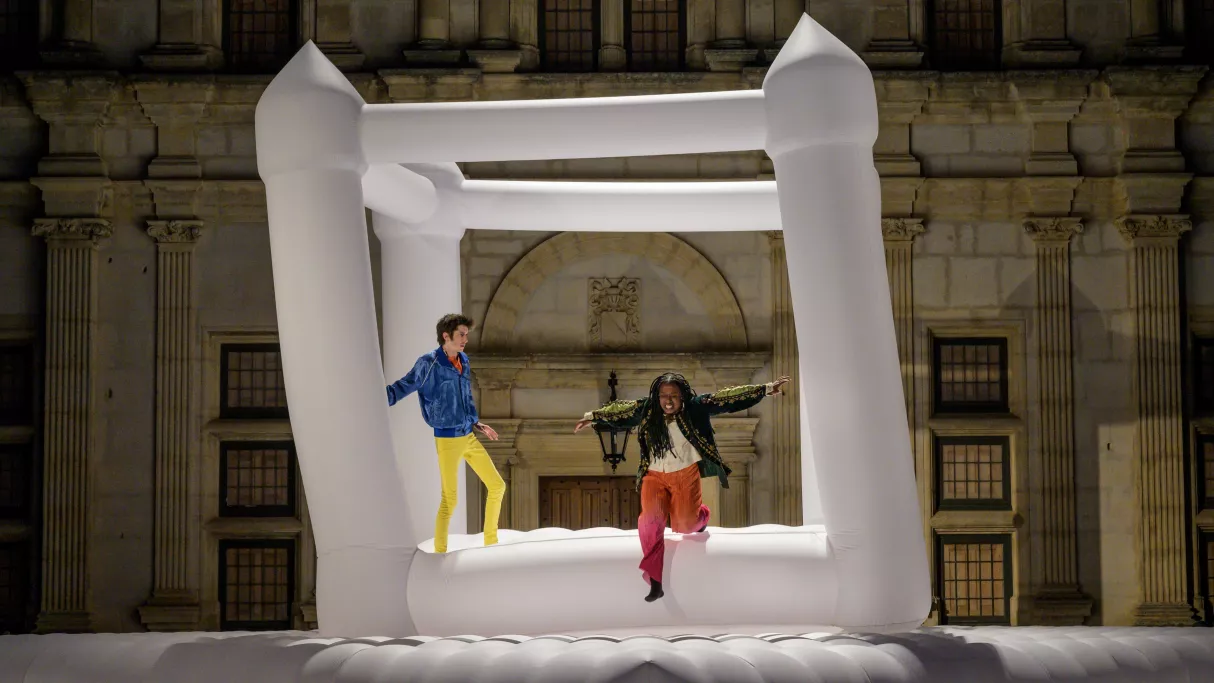 Pour réveiller Corneille à nos yeux comme à nos oreilles, Jean Bellorini prend le parti de la naïveté, du jeu et de l’enfance. Le plateau se présente d’abord dans son entière nudité, ouvert à toutes les transformations. D’emblée, Chimène se dresse face à Rodrigue, dans une scène de confrontation sublime et explosive. Pour clarifier l’origine du drame, les quatre personnages en scène replongent dans l’Histoire d’un Cid… Naviguant entre songe et réalité, le petit choeur fabrique sous nos yeux un grand chant d’amour, violent et ludique. Les étoiles brillent et le désastre se creuse. Créé en plein air lors des Fêtes Nocturnes du Château de Grignan, en juin 2024, ce spectacle trouve ensuite le chemin des salles de théâtre. Cette variation féerique autour du Cid signée par Jean Bellorini et sa troupe fait éclore le poème de Corneille dans son éclat premier – un éclat pour aujourd’hui.