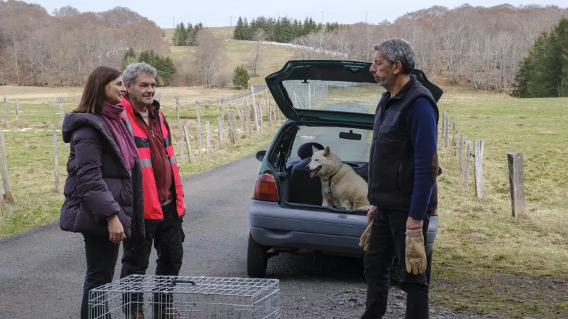 Victor Chevasse, le cantonnier de Valerande-les-Chantelle, est interviewé pour un reportage sur la chaîne des Puys.