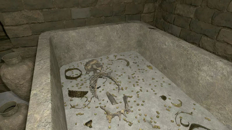 En 1988, les archéologues mènent des fouilles sous l’un des palais de Nimroud, et dégagent une pièce voûtée, remplie de coupes de bronze, de lampes et de jarres en céramique. La pièce ouvre sur une chambre inviolée et chargée d’objets précieux. Au fond se trouve un sarcophage en pierre, encore intact. Il contient une quantité impressionnante de bijoux, colliers, couronnes et bagues en or. En effet, les trésors que referment cette sépulture dépassent ceux trouvés dans la tombe de Toutankhamon. Et à l’intérieur on exhume les corps de deux femmes, placées l’une au-dessus de l’autre. Manifestement, il s’agissait de personnes de haut rang. Mais qui étaient-elles ?