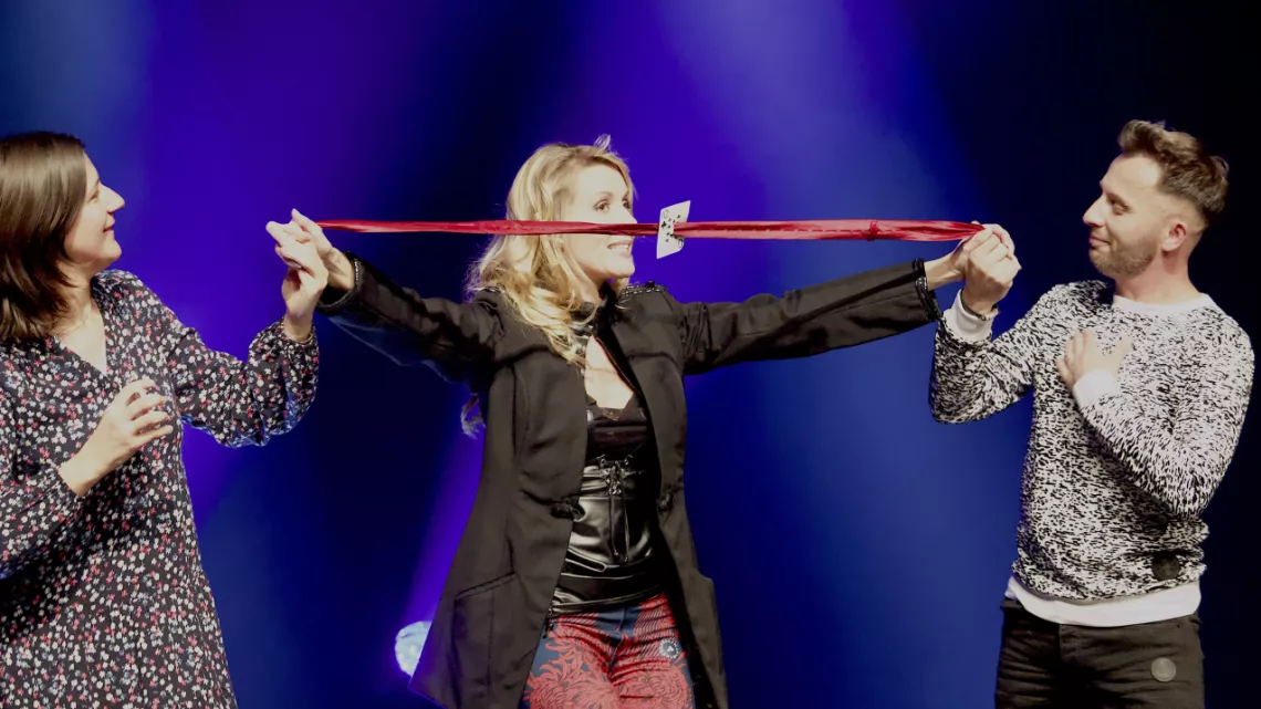 Ce spectacle familial va vous transporter dans son univers parfois mystérieux, souvent très drôle et toujours surprenant. Caroline prend le pouvoir et déroule sa palette de talents seule en scène ! Entre quick-change, mentalisme, manipulations expertes de cartes ou de Rubik’s Cube et prédictions, le public est amusé, admiratif, fasciné, conquis !