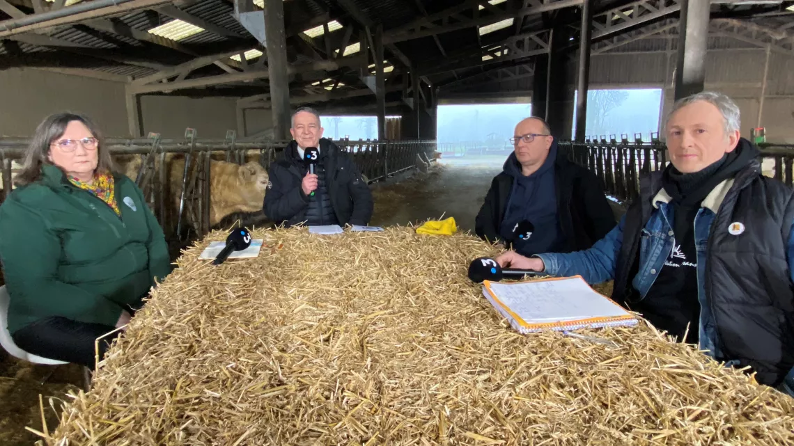 Dimanche en politique a installé ses caméras à la ferme de Cahagnes pour une émission spéciale consacrée à la crise agricole, un an après.