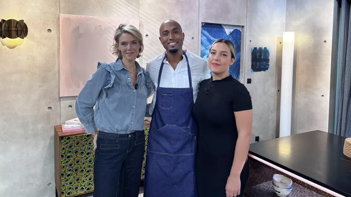 Récemment récompensée au Festival de la fiction de La Rochelle pour son rôle dans le téléfilm Signalements, Cécile Bois, interprète de la populaire Candice Renoir, est l'invitée de Brice Laurent Dubois. L'épreuve du jour pour l'actrice : cuisiner des saint-jacques avec une salade kalawang et un crumble salé. La scénariste et dessinatrice Jade Amory les rejoindra pour parler de sa collection de livres jeunesse Noémie.
