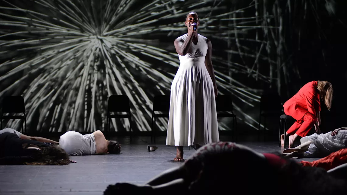 La comédienne et chorégraphe Danielle Gabou a choisi de mettre en lumière neuf comédiennes pour incarner neuf témoins. Sans ignorer la responsabilité de l’artiste face à des faits sociaux aussi primordiaux que la question des violences conjugales, qui se situe entre vérité qui révèle et liberté qui émancipe.