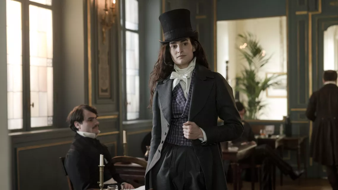 1830. Afin d’échapper à son mari violent, Aurore Dupin fuit son château de Nohant pour Paris, en pleine effervescente romantique. Dans la capitale du début du 19e siècle, Aurore mène une vie de bohème et publie son premier roman, sous pseudonyme : George Sand est née. Première femme écrivaine à vivre de sa plume, elle enchaîne les succès littéraires et déchaîne les passions amoureuses. Féministe avant l’heure, portant le pantalon et fumant la pipe, elle collectionne les amants, dont les plus célèbres sont Alfred de Musset et la comédienne Marie Dorval, et va venir bousculer la société des hommes.