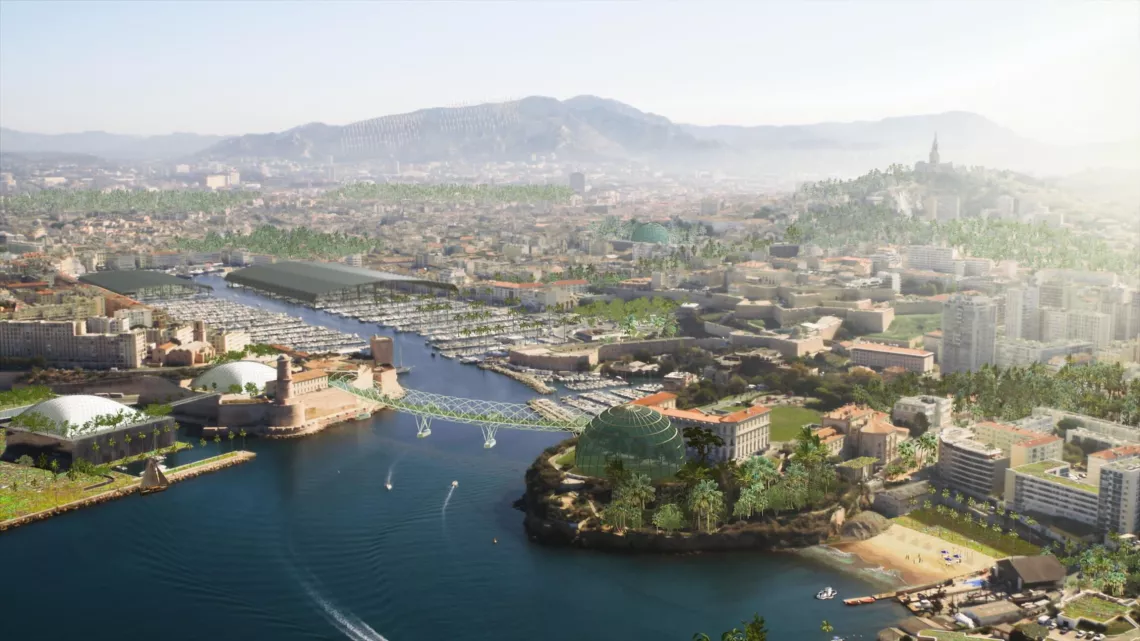 A Marseille, en 2100, on préférera végétaliser cette grande ville qui manque d'espaces verts. On convertira des rues et on pourrait même reconstruire la passerelle du Vieux-Port. Comme dans toutes les villes de France, on s'y déplacera à l’ombre d’un couvert végétal adapté à un nouveau climat. Demain, on réinventera les quartiers denses de la cité phocéenne. On fera peut-être de nos vieilles tours en bétons des quartiers nord des lieux de culture éphémère. Car au fond, les arts résistent toujours mieux à l'érosion que le béton.