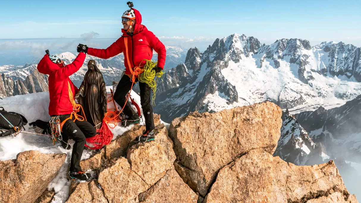 Ces statues de métal à l'effigie de la Vierge Marie trônent au sommet de falaises vertigineuses. Érigées il y a près de deux siècles, elles témoignent d'une époque où l'alpinisme était indissociable de la foi et du sacrifice. Symbole de protection, ces statues sont un héritage sacré auquel les jeunes montagnards vouent un respect profond. L'alpinisme est un univers où l'on n'oublie pas ceux qui nous ont précédés, qui ont risqué leur vie pour atteindre des sommets plus élevés.