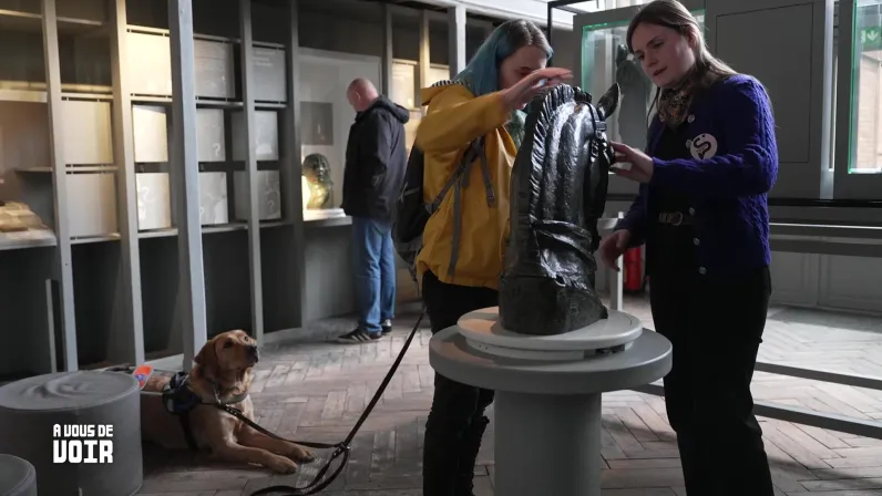 Sa curiosité la conduit auprès d’Alice, bénévole à l’association Souffleurs de sens, où une visite tactile du musée Bourdelle l’attend. Une déambulation poétique au plus près de la matière et des descriptions d’Alice murmurées à son oreille.