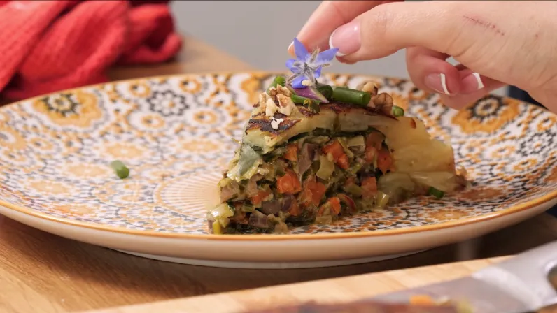 Au menu : une tourte dorée et fondante à base de pommes de terre et de beurre clarifié, garnie d’une farce de rognons relevée de poireaux, persil et pieds d’épinards, le tout enveloppé dans des feuilles d’épinards. Une rencontre pleine d’audace culinaires et de spontanéité.