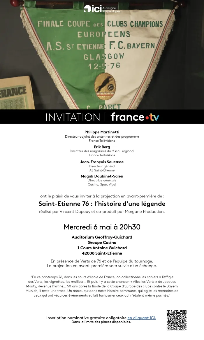 Nous avons le plaisir de vous convier à l'avant-première du documentaire "Saint-Etienne 76 : l'histoire d'une légende".