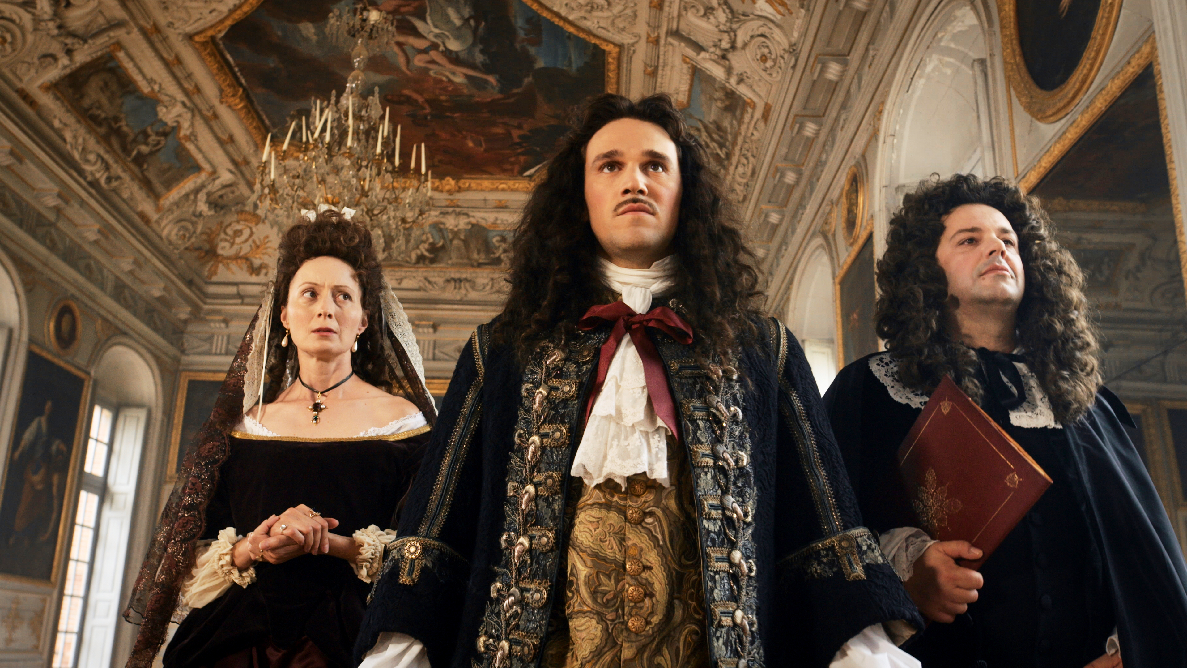 Tristan Robin (Louis XIV, 20 à 50 ans) • Boris Terral (Louis XIV, 52 à 63 ans) • Andréa Nicolas (Louis XIV, 5 à 10 ans) • Jules Plé (Louis XIV, de 13 à 15 ans) • Yvon Martin (le cardinal Mazarin) • Grégoire Baujat (Louis de Condé) • Arnaud Préchac (Philippe d'Orléans) • Charles Durot (Charles Ier d'Angleterre) • Franck Borde (Charles II d'Angleterre) • Benjamin Gomez (Molière) • Donat Guibert (N. Fouquet) • Anthony Perroy (André Le Nôtre) • Alfred Perrin (André Le Nôtre) • Emmanuel Seguier (Louis Le Vau) • Arnaud Guy (Louvois) • Xavier Clion (Guillaume III d'Orange) • Philippe Cariou (Jacques II d'Angleterre) • Florent Houdu (le Chevallier de Lorraine) • Fabien Floris (Carlos II d'Espagne) • Jacques Courtès (parlementaire Broussel)