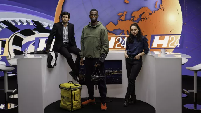 Abel, livreur à vélo pour l’appli Enjoy!, Igor, jeune avocat, Yass, stagiaire dans une chaîne info prête à tout pour le scoop : trois destins qui, sans vraiment le vouloir, vont se téléscoper sous le rouleau compresseur d’une société dont le tout, tout de suite, est le moteur principal.